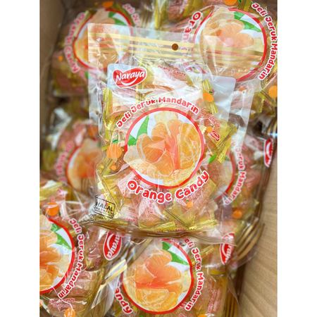 NARAYA Orange Candy berupa permen lunak berupa jelly dengan rasa jeruk yang kenyal dan enak berlapis gula, dan yang bikin lekat di ingatan, berbentuk seperti jeruk itu sendiri.